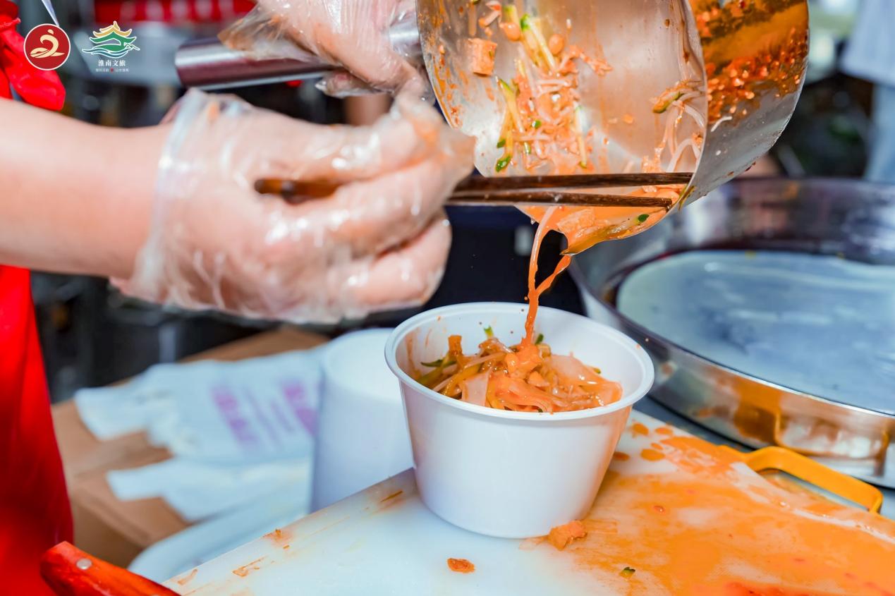 三个美食摊位前香气四溢,人气火爆。造型精巧的淮北花馍与香气浓郁的榴园地锅鸡引来众多目光;营家烧饼酥脆可口,醇香的口子窖酒让人回味无穷;淮北小三样——面皮、烫面、娃娃鱼,更是让上海市民体验到了地道的淮北小吃风味。